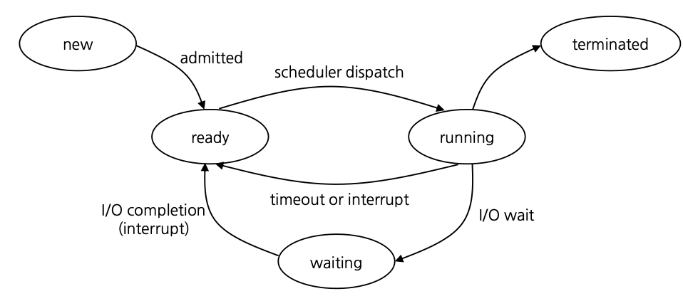 5. waiting (대기) : I/O controller를 사용하여 I/O가 완료될 때까지 대기하는 상태